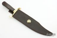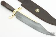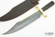Knifemaker extraordinaire Gil Hibben continues to design exceptional knives made for hard everyday use and the Gil Hibben Old West Bowie Knife - Damascus Edition takes it even further! Take it with you into the most untamed environments and use it under the harshest conditions. It has a keenly sharp, 14" Damascus steel clip point blade with a high-polish finish and a beefy profile. The wooden handle is complemented by a gold-plated blade catcher and handguard. A custom leather belt sheath protects and stores the massive bowie knife. This is a BudK Exclusive design, which has been reimagined by Gil Hibben, and brought back for a very, very limited time. Don’t let this one get away! Comes with original box, sheath and papers. Excellent condition.