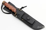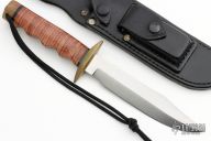 This Murphy Combat Knife 50th Anniversary Edition 1938-1988 features a satin finished blade with false top edge, .220" blade stock and 1.113" blade depth, hidden tang construction. The handle has a brass guard and butt with stacked leather grip and black spacers. Has a tang nut that is a little loose, but i dont have a tool to tighten it. Comes with black leather sheath. Handle is a little loose, needs to be tighted at the tang nut, otherwise excellent condition.