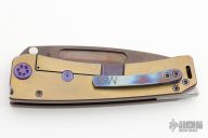 This Marauder from Medford Knife and Tool features a Vulcan finished blade with fullers. The handle has an anodized titanium frame over a steel backspacer and titanium tip up clip. Includes original box, papers and hard case. Excellent Condition.