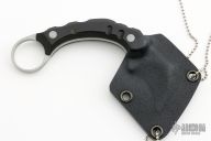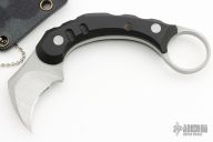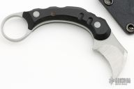 This Karambit by RSK features a two-tone blade with .199" blade stock and 1.475" blade depth, full tang construction. The handle has black G-10 scales. Comes with a kydex sheath. Excellent condition.