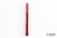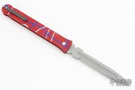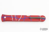 This Splash Assassin by Rob Dalton features a double-edged bead blast finish blade and a splash anodized aluminum frame. Bead blast titanium clip, tip up carry. Powerful coil spring action. Has a couple light scuffs otherwise excellent condition.