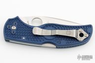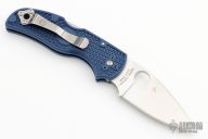 This Native 5 has a lightweight blue FRN handle and a full-flat ground SPY27 steel blade. The handle on the Native is patterned with two separate finger choils. The first choil, where the blade and handle meet, allow positioning the index finger closer to the knife's sharpened edge for control over the cutting surface. Behind the first choil, the second positions the hand farther back on the folder for dexterous cutting while pushing the blade away from you. Bi-Directional Texturing molded into the FRN handle form varying levels of steps minimizing forward or backward sliding. 4-way reversible pocket clip for ambidextrous carry.