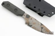 This SA-L has TAD Gear Terminator Skull (T-Skull) laser engraving on the blade and black G-10 Gunner Grip scales, .190" blade thickness and 1.339" blade depth, full tang construction. False top edge. Notched thumbrest and rear of handle. Comes with a kydex sheath. Excellent condition.