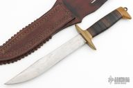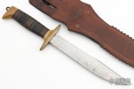 Frank Richtig made knives for about 50 years from the 1930's to the 1970's. He was born in Nebraska in 1887, and became an apprentice blacksmith in 1905, and in 1916 began experimenting with electric heat treating of steel. in 1925 he started producing knives. He produced many styles of cast aluminum handled kitchen knives as well as aluminum and regular handled hunting knives. His main credit would be in his secret tempering method. Where ever he'd set up his wares he'd bring an anvil along and proceed to cut a piece of metal in two and still retain an edge sharp enough to shred paper. In 1936 Frank Richtig appeared in Ripley’s Believe It or Not after using one of his knives to cut the lock from a jail cell. Richtig’s claim to fame, so to speak, was in his blades. Having the proper amount of hardness to cut through steel and iron, and yet be able to maintain a fine cutting edge. It is said that Richtig’s method of treating the steel, a closely guarded secret while he was alive, is is something he took to the grave with him. One of his other unique features was his cast aluminum handles. In 1938 he was declared a Master Ironsmith by the National Blacksmith and Welders Association. Frank passed away in 1977.