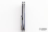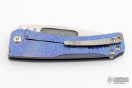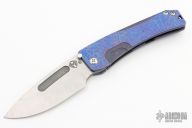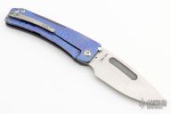This Slim Midi Marauder from Medford Knife and Tool features a stonewashed drop point blade with thumb stud and recess. The handle has a textured and anodized titanium frame with tip up clip. Excellent detent, lockup, and seating. Has some scuffs, otherwise excellent condition