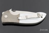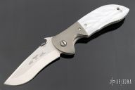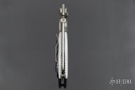 'The Emerson Commander is a 21st century combination of design, materials, performance, and razor sharpness. This knife along with other Emerson Knives, sets the new standard for the cutlery industry and continues to push the design and performance envelope for cutting tools well into the 21st century.' 'The Commander knife-battle tested and proven-incorporates some of the most advanced ergonomics ever featured on a folding knife. The knife, already in use with elite armed forces, European Military strike teams and NATO Counter-Terrorist units throughout the world was chosen by the U.S. Navy SEAL teams for issue to special units within the Naval Special Forces Units. Because of its ruggedness, it has become a favorite of hunters, outdoorsman and adventurers the world over. It features the patented 'wave shaped opening feature.' This production Commander linerlock folder has a stonewashed blade with orange peel finish bolsters, and pearlex scales. Wave feature. #4213. Excellent condition. Comes with original box and papers. Signed "Ernest Emerson 2013" on the rear of the blade.