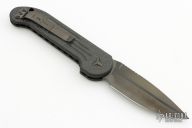 This Custom LUDT by Marfione Custom Knives has a hand rub satin finished DLC blade with notched thumbrest and false top edge. The handle has a carbon fiber frame with a carbon fiber inlaid push butt, and a tip up satin black DLC stainless steel clip, lanyard hole at the butt. Comes with a zippered case, original box and COA. RARE! Excellent condition. #006 Dated 2022