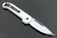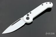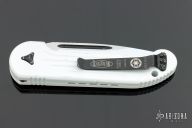 This LUDT by Microtech features a two-tone white coated blade with fullers. The handle has a white coated aluminum frame with black ringed hardware and tip up clip. Dated 01/2017 and s/n 230. Comes with original box. Has some wear on the finishes, otherwise good condition.