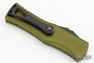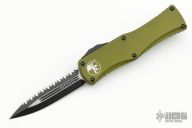 This Hera by Microtech Knives features a stonewashed blade with full serrations.  The handle has a OD Green aluminum frame with black hardware and tip down titanium clip with ceramic ball inset. Dated 08/2022 #5399. Comes with original box and papers. Excellent condition.