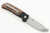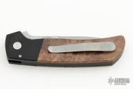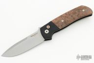 This ATCF Auto by Pro-Tech features a stonewashed Magnacut blade with notched thumbrest. The handle has a black aluminum frame with maple burl scales, tip up 3d milled titanium clip with hidden screws. Comes with original box and papers. Excellent condition.