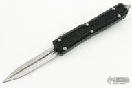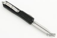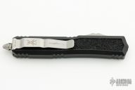 This Makora OTF automatic by Microtech features a stonewashed double edge blade with one fully serrated edge. The handle has a black aluminum frame with nonslip inlays, stainless steel clip, tip down carry. Dated 08/2022 and #2147 on clip. Comes with the original box and papers. Excellent Condition.