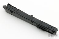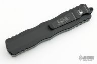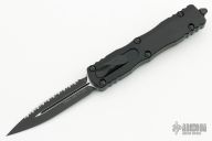 This Dirac Delta OTF automatic by Microtech features a D/E DLC finished blade with a fully serrated edge. The handle is DLC aluminum with a stainless steel tip down clip. Serial number 8104 and dated 03/2023. Comes with original box and papers. Excellent Condition.