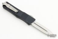 This Combat Troodon OTF automatic features a satin finished D/E blade with a standard edge. Black aluminum handle with a tip down blasted stainless steel clip. Glass breaker. Serial number 28482 and dated 06/2020. Comes with original box and papers. Excellent condition.