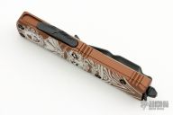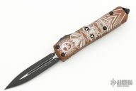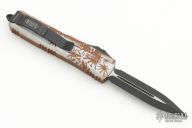 This UTX-85 automatic by Microtech features a D/E black blade with standard edges. The handle has a PVK Custom finished aluminum frame. Stainless steel clip. Glass breaker. Serial number 68020 and dated 06/2021. Comes with a Microtech box and papers. Excellent condition.