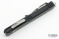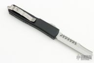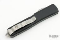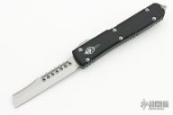 This Ultratech by Microtech Knives features a stonewashed Hellhound Razor blade with satin flats and false top edge. The handle has a black aluminum frame with tip down blasted stainless steel clip and hardware. Comes with a Microtech box and papers. 12/2022, S/N 653. Excellent condition.