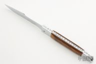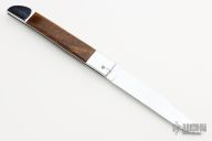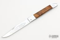 This Slipjoint by Agasi Hambartsumian of Armenian Doctor Knives features a polished and etched blade with nail nick. The handle has a polished stainless steel frame with fileworked stainless steel backspacer, wood covers. New from maker.