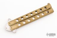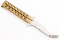 This Golden Dragon is a 1980's classic Taylor/Seto Balisong with brass handles. Has a satin finished blade with a sharpened top edge. Has some light scratches and patina, otherwise excellent condition. Comes with original box.
