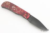 This linerlock by Jake Elenbaas features a parkerized 8670 Steel blade with single thumbstud. The handle has mother board scales, stainless steel liners and a black G-10 backspacer. Comes with COA. New from maker.