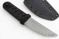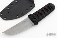This Kraiken from Ben Tendick of B.R.T. Bladeworks features a kwaiken blade with swedges. .190" Blade stock 1.287" Blade Depth. The handle has a Tsuka Ito wrap over hemp cord underwrap. Includes kydex sheath. Excellent condition.