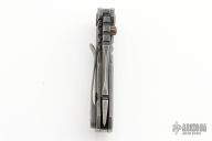 This Chupacabra Framelock by Old Dominion Knifeworks features a dark stonewash finished blade with a notched thumbrest and single thumbstud. The handle has a stonewashed titanium frame with a carbon fiber backspacer and a titanium tip up pocket clip. Nice detent, lockup and blade seating, rides on bearings.  Comes with a COA dated "2022". Excellent condition. Comes with a zippered case.