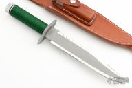 This Lile Cerakote Series First Blood Knife by Vaughn Neeley is a Series C and #052, it features a two tone blade with Titanium Grey Cerakote center and mirror polished grinds, sharpened top edge and 14 saw-teeth on blade spine, .259" blade stock and 1.477" blade depth, hidden tang construction. The handle has a Titanium Grey Cerakote stainless steel double guard with flat and Phillips head screwdrivers, hollow cord wrapped handle, and aluminum removable butt cap with an O-ring to make it water-proof. Comes with brown leather sheath that has a honing stone in the sheath. Has compass in butt cap. The blade is stamped "C Series 067" Designed by Jimmy Lile and made by Vaughn Neeley. Comes with zippered case. New From Maker!