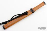 This Tanto by Kaji Customs features a hand rub satin finished blade with Hamon, .237" blade stock and 1" blade depth, hidden tang construction. The handle has a copper habiki, red iron tsuba, red hear grip with ebony butt. Comes with an ebony and red heart saya. New from maker. The individual components of this knife are nice, but the fit up is a little loose.