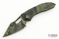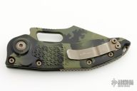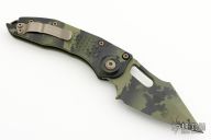 This Stitch Auto by Microtech Knives features an OD Green camo coated blade and false top edge, notched thumb and finger rests. The handle has an OD Green cameo coated anodized and milled aluminum handle with a titanium backspacer, stainless steel hardware and clip, tip up carry, lanyard hole at the butt. Comes with original box and papers. S/N of 103 and dated 02/2023. Excellent condition.