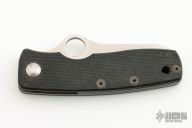 This Bob Terzuola designed knife by Spyderco has a satin finished partially serrated blade with thumbhole. The handle has black G-10 scales with a single stainless steel liner and black backspacer. Vintage discontinued model. Missing the clip, has some scuffs and scratches, otherwise fair condition. This knife is a left handed version.