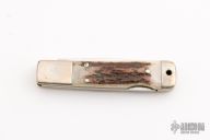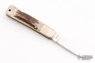 This Vintage lockback by AG Russell has a mirror polished blade with nail nick. The handle has nickel silver bolsters, stag scales with nickel silver pins, brass liners and a stainless steel backspacer. Has a few light scratches, otherwise excellent condition.