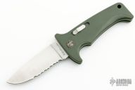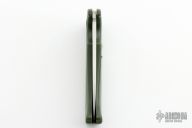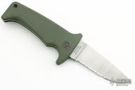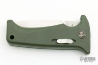 This Rare (pre Fiskars buyout) Gerber Parabellum has a satin finished drop point stainless steel blade. Handle is green polymer with green fiber backspacer and thumb axis-lock button. Lanyard hole. This (circa) early 90s creation is in excellent condition.