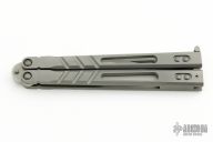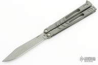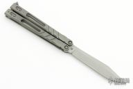 This Alpha Beast Balisong from Blade Runner Systems (BRS) features a tumble finished clip point blade. The handle has titanium frame with T latch on pommel. Includes original box. Excellent Condition.