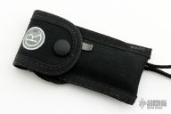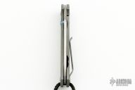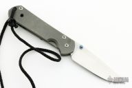 This Left Handed Small Sebenza 21 by Chris Reeve features a tumbled blade with single anodized thumbstud. The frame is bead blasted titanium with matching tip up clip. Nice detent, lockup and blade seating. Has scuffs/scratches, has been resharpened, otherwise good condition. Comes with nylon belt sheath.