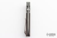 This Eagle Rock linerlock is from Custom Knife Factory and designed by Bob Terzuola. It features a tumble finish multi-ground blade with fullers and false top edge, notched thumbrest and a thumbdisc. The handle has Timascus pivot collars, stonewash bolsters, carbon fiber scales, stonewash titanium liners, stonewash backspacer, tip up titanium clip. Nice blade seating, detent, and lockup. Excellent work. Comes with original Velcro case and COA. Excellent condition.