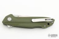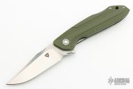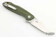 - Bohler M390 blade steel in a drop point shape and satin finish.