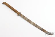 This AK-47 by Busse Knives features a desert sage camo coated blade with large choil, .200" blade stock and 1.368" blade depth, full tang construction. The handle has natural canvas micarta scales with hollow tube pins. Has a couple light scuffs, otherwise excellent condition.