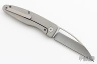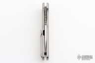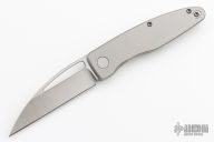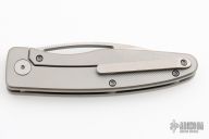 This knife features a satin finished blade with a notched flipper tab. The handle features a bead blasted titanium frame with a matching tip up pocket clip. Includes a padded zippered case and box. Excellent Condition.