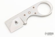 This Necker by Graham Knives features a satin finish blade with notched thumbrest, .181" blade stock, 1.048" blade depth. Full tang construction with mosaic pins and 1" diameter finger hole. Includes brown leather sheath. Excellent condition.