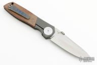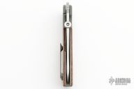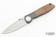 This knife by Resco Instruments features a satin finished blade with a large thumb disc. The handle has a bead blasted titanium frame with a matching tip up pocket clip and brown micarta scales. Excellent Condition.