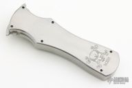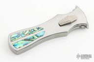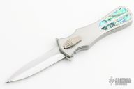 This Burn Razor OTF has a mirror polished hollow ground, double-edged blade.  The handle features a stainless steel frame with abalone inlays. Blade deploys with authority and locks up tight with minimal blade play.  Includes a padded zippered case.  Ha a couple light scratches, otherwise excellent condition.