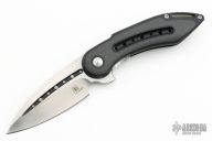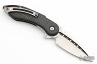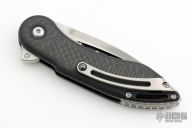 This Mini Glimpse by SteelCraft and Todd Begg features a satin finished spear point blade with fullers and a flipper. The handle has a black G-10 frame with carbon fiber inlays, titanium backspacer and tip up clip. Rides on IKBS bearings, nice detent, lockup and blade seating. Excellent condition. Comes with original box and papers.