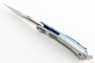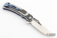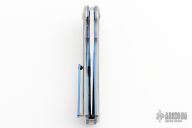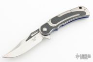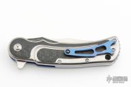 This Citadel linerlock flipper by Todd Begg features a mirror polished clip point blade with carbon fiber inlays.  The handle features a satin finished titanium frame with carbon fiber inlays over anodized titanium liners and a matching tip up pocket clip.  Titanium Backspacer.  Includes the original box and padded case. Excellent condition.