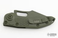 This Stitch Auto by Microtech Knives features an OD Green coated blade and false top edge, notched thumb and finger rests. The handle has an OD Green coated and milled aluminum handle with a titanium backspacer, stainless steel hardware and clip, tip up carry, lanyard hole at the butt. Comes with original box and papers. S/N of 11836 and dated 02/2023. Excellent Condition.
