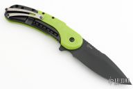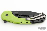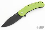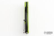 This Bodega by Begg Knives has a black finished stainless steel spear point blade with IKBS and notched thumb rest. Handle is green g10 with matching titanium lock bar and cracked ice finished, tip up clip with a ceramic ball. Zero blade play, excellent (early) lockup. Excellent condition.