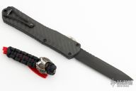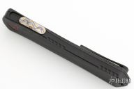This Manticore-E by Heretic Knives features a DLC tanto blade with notched thumbrest. The handle has a black aluminum frame, black stainless steel hardware and tip down clip, and a carbon fiber thumbslide. Comes with original box and papers. Comes with a Predator bead. Has a few scuffs, excellent condition otherwise.
