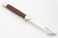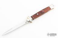 Angelo Campolin Sr. was born in 1923 in Maniago, Italy. He worked on perfecting his knife making skills before WWII and at this time made his first switchblades. After the war, in 1947 he started his company and made 30 stilettos with the marking “Angelo Campolin”. In the 1970’s Angelo’s son Gianni started to work in the company and they were specializing in folding hunting knives and also manual folding stilettos for the Robert Klaas company in Solingen Germany with their Kissing Cranes mark. In 2002 American switchblade collectors Dan Fuller, Brad West, and Tim Zinser were visiting Maniago and enjoying a few glasses of wine in a bar with Angelo Jr. and Gianni. The discussion was about a new name for some knife projects they wanted to pursue. It was Brad West that suggested the tang stamp should be AGA, for Angelo, Gianni, Angelo, thus representing three generations in the knife making business. The Campolins liked it and it stuck. In the beginning it was just a few items, but grew to the point where now there are 12 models and different scale options. The goal has been to offer quality switchblades using the old methods and traditions. Being a collector himself, Angelo Jr. knows what others like. The company headquarters has moved to Austria with production still in the original Maniago shop, as well as the others in Maniago that produce the knives for A.G.A. Campolin.