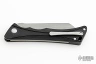 This push button auto features a stonewashed blade. The handle has a black aluminum frame with a matching tip up pocket clip. Includes the original box. Excellent Condition.