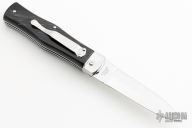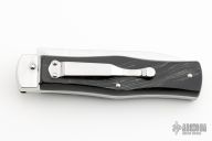 This lever auto from Mikov Knives has a mirror polished spear point blade with false top edge and a fileworked spine. The handle has stainless steel bolsters and liners, buffalo horn scales, stainless steel backspacer. Stainless steel tip down pocket clip.  Action is smooth and strong. Includes the original box and a brown leather sheath.  Excellent Condition.