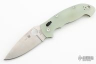 This Manix 2 has a satin finished CMP S30V stainless steel drop point blade with thumbhole and notched thumbrest. Handle is jade G-10 over stainless steel liners, 2-way reversible tip up stainless steel clip, and lanyard tube pin. Excellent condition. Comes with original box and paperwork.