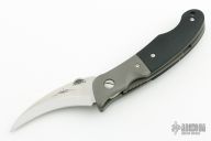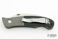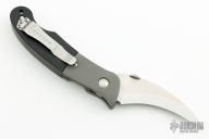 This Custom Super Elvia Prototype by Emerson Knives features a satin finished hawkbill blade with thumbdisc. The handle has bead blasted and dovetailed titanium bolsters, bead blasted titanium liners, black richlite scales, and a stainless steel tip up clip. Comes with original box. New from maker at the 2023 Blade Show.