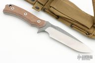 This Repercussion 2023 by Ramon Chaves features a stonewash finished blade with .246" blade stock and 1.562" blade depth, full tang construction with brown canvas micarta scales. Comes with a tan nylon Spec-Ops Brand sheath. New from maker! Comes with zippered case and COA. #02.